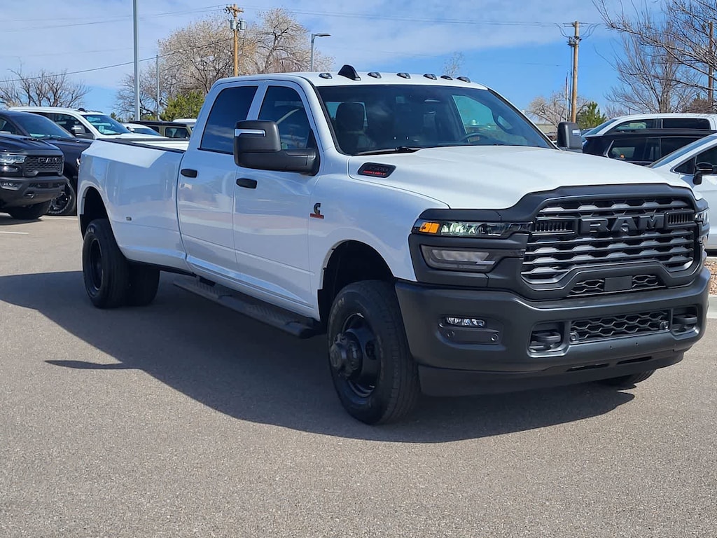 GRUPO DE EQUIPAMIENTO TRADESMAN NIVEL 1: Grupo Convenience, espejo retrovisor con atenuación automática, para más detalles visite DriveUconnect.com, para más información, llame al 800-643-2112, ventana trasera eléctrica deslizante, sistema de alerta de vehículos de emergencia (EVAS), pantalla táctil de 12 pulgadas, parabrisas acústico tintado, navegación GPS, retrovisores exteriores con calefacción, estribos laterales tubulares negros MOPAR, SiriusXM con 360L, servicios de viaje y tráfico conectados, luces de posición en los retrovisores, toma de corriente exterior de 115 V CA, Alexa integrada, moqueta, retrovisores auxiliares convexos ajustables eléctricamente, Páginas de información todoterreno, páginas de remolque, inversor de 400 W, pantalla táctil independiente, radio HD, retrovisores eléctricos, calefactables, plegables y telescópicos, radio: Uconnect 5 Nav con pantalla de 12,0 pulgadas, retrovisores exteriores con intermitentes suplementarios, luces de cortesía en los retrovisores exteriores, aire, luces de gálibo de ruedas traseras dobles, neumáticos: LT235/80R17E BSW para todas las estaciones, rueda de repuesto de acero de 17", luces de gálibo de la caja y los guardabarros traseros, eje delantero de 6000 lb con extensión de cubo, neumáticos de la marca Nexen, PBT: 14 000 lb, revestimientos de los pasos de rueda traseros, PAQUETE DE COMODIDAD PARA LA CAJA: revestimiento pulverizado MOPAR, iluminación LED de la caja, TRANSMISIÓN: AUTOMÁTICA TORQUEFLITE HD DE 8 VELOCIDADES. La Ram Tradesman, con exterior en Bright White Clearcoat e interior en Diesel Gray/Black, cuenta con un motor de 6 cilindros en línea con 405 CV a 5600 rpm*.